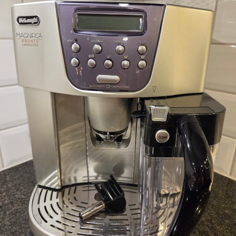 Electrolux kaffemasin Caffe Silenzio.Den är rengjord. Jag har köpt ny bryggenhet från Delonghi till den. Fungerar som den ska. Den har inbyggd kaffekvarn.