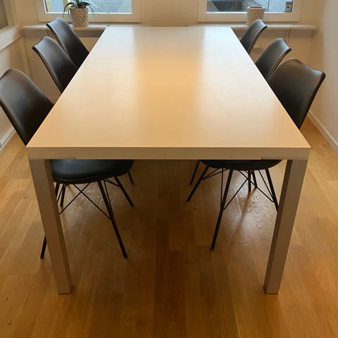 Matbord från Mio säljes pga flytt. Iläggsskiva finns så bordet kan förlängas. Mycket slitstarkt och tåligt bord som blir som nytt efter en slipning och inoljning.