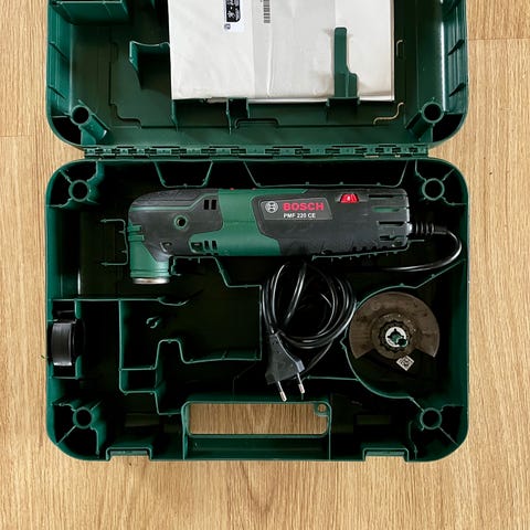 Festool multiverktyg Vecturo OSC 18 inkl. stabiliseringsbord med tillbehör, batteri och laddare köpes.
