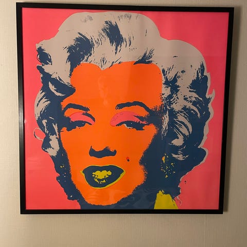 Andy Warhol affisch med fotografi från utställningen "Fotografier" på Moderna Museet, daterad 20.3–2.5 1982. Motivet är ett svartvitt fotografi med texttryck upptill och nertill. Affischen är inramad bakom glas med enkel ram. Passar som väggdekoration i hem eller kontor.