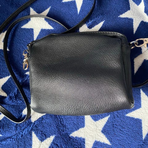 liten väska med axelrem djup 13cm och bredd12-13 cm med delat del inuti i väskan hänger bara oanvänd i garderoben köpt utomlands. färgen är brun.