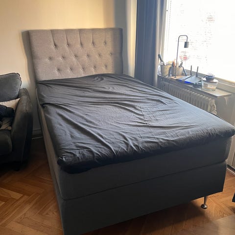 Mio kontinentalsäng med sänggavel i storlek 90x200 cm. Sängen är i mycket bra skick.