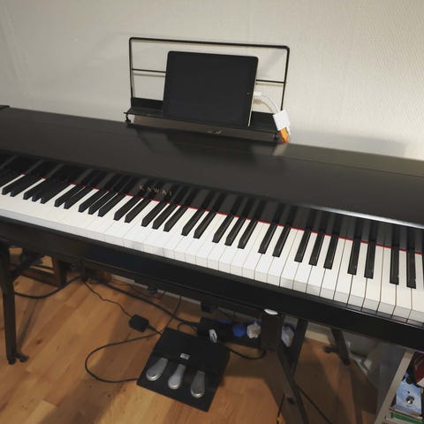 Pianot är i gott skick och fungerar som det ska. Elegant svart design som passar fint i hemmet.
