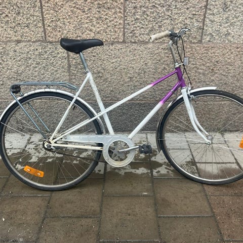 Unik och funktionell damcykel från fabrikatet Velodrom Concept. Cykeln är utrustad med pakethållare, stänkskärmar och frambroms. Cykeln fungerar utmärkt och är körklar!