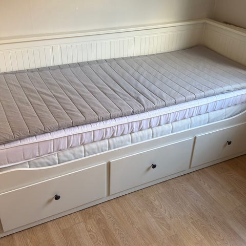 Säljer våran Ikea bäddsoffa då vi inte längre har användning för den. Den har några små repor men som inte syns från långt håll. Den kan vara något bökig att dra ut och in men funkar.