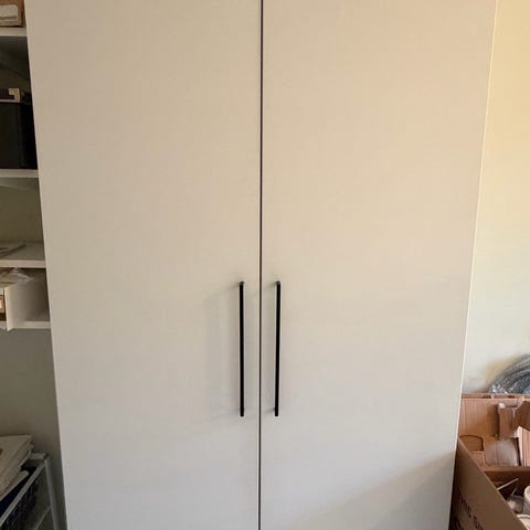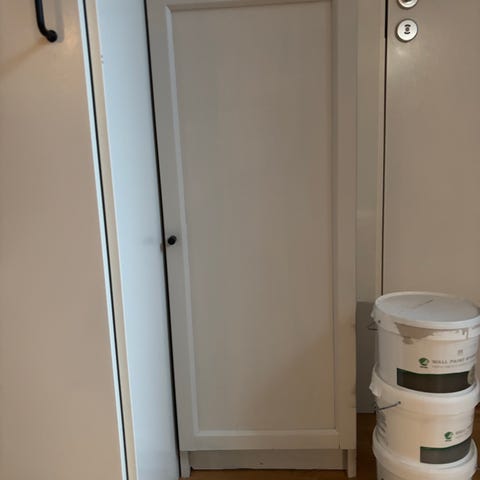 P.g.a. renovering säljes Pax garderob med dörr Flisberget. Inkl 2 hyllplan och 1 klädstång. Bredd 50 cm, höjd 236 cm, djup 42 cm inkl dörr. Var ursprungligen en 58 cm djup stomme men avkortad för att passa i djupet på en nisch.
