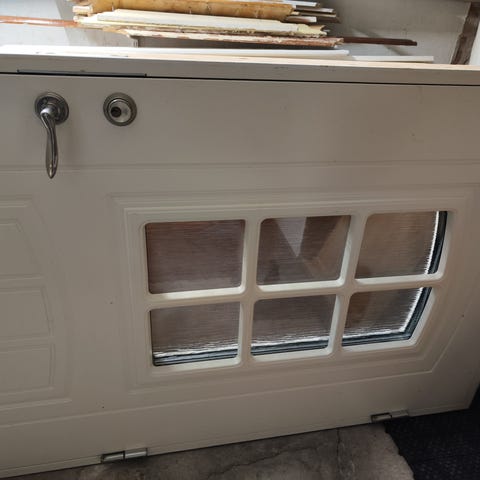 Leksandsdörren Sunnanäng ytterdörr med vit utsida och glasruta med spröjs. Dörren har rektangulärt fönster med sex rutor som släpper in ljus i hall eller entré. Modellbeteckning enligt etikett: Sunnanäng V26-G 10–21. Passar som ytterdörr till bostad, fritidshus eller annan byggnad där man önskar en klassisk dörr med glasinsläpp.