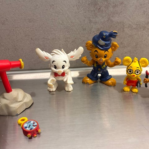 Dinosaurie figur leksak i grön plast. Liten stående dinosaurie med stora ögon och kort svans. Passar som leksak, samlarfigur eller dekoration i barnrum. Bredden är 2cm och höjden är 3,6cm.