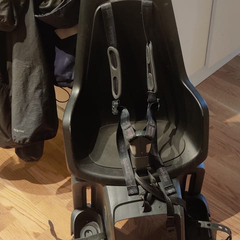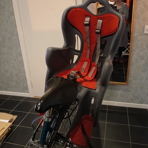 Praktisk barnstol för montering på cykel. Säkerhetsbälte med 3 punkter, för barn upp till 22kg.