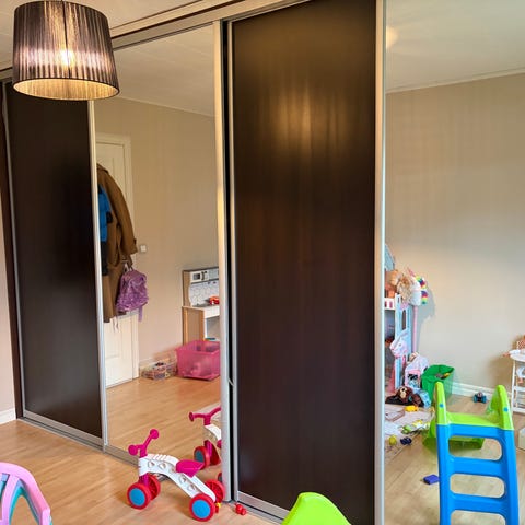 Skjutdörrar med speglar säljs i befintligt skick.