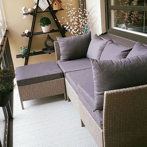 Hörnschäslong utemöbel konstrotting med vita dynor