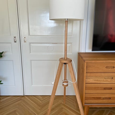Säljer min fina golvlampa med tre ben. Retro med utbytbar lampskärm eller om man vill ha enbart glödlampa.
