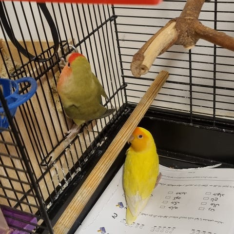 Måste tyvärr sälja mina tre dvärgpapegojor då hem situationen är ändrand. Ace är 8 år och kär i scarface så jag ser helst att dom kommer till samma hem. Sedan har vi kiwi som är lite försiktig av sig. Scarface och kiwi är ungefär 3 år gamla. Bur och leksaker går att köpa till. Det viktigaste för mig är att dom kommer till hem där det finns tid och kärlek och såklart en laglig bur.
