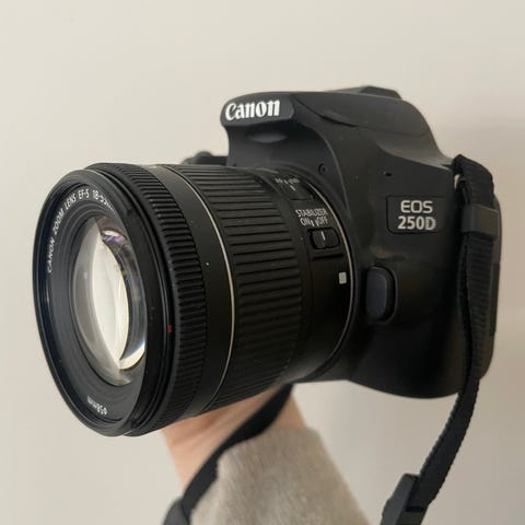 Säljer min Canon EOS 250D som är knappt använd och i perfekt skick. Perfekt för både nybörjare och mer erfarna fotografer som vill ha en kompakt och lätt DSLR med hög bildkvalitet.