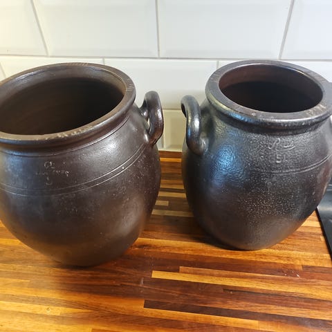 Har 2 höganäs krukor som är 8 och 6 L. Säljer den stora för 400 kr och den lilla för 300, köper man bägge kostar dom 500 kr. Kan köras hem till dig för en liten peng. Mitt nummer är 0767120251