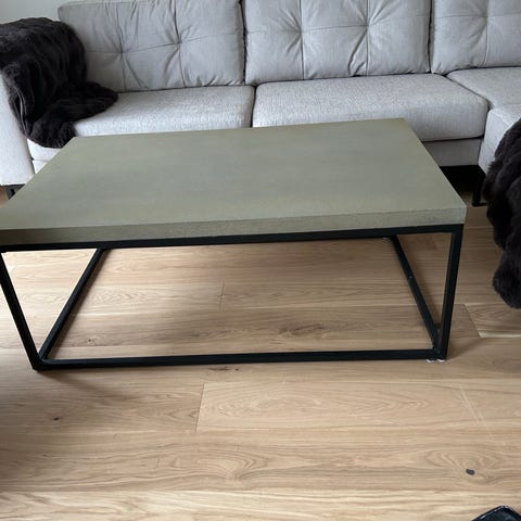 Fint soffbord i grå marmor med matt yta och svart underrede. MIO ”Amanda”.