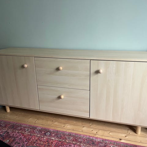 Mycket gott skick, sparsamt använd och väl omhändertagen. Stilren och tidlös modell med gott om förvaring bakom dörrarna. Perfekt för TV, mediautrustning och förvaring i vardagsrum.
