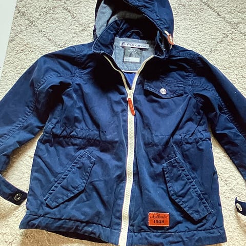 Cubus jacka för barn, unisexmodell i storlek 152. Jackan är blå och tillverkad i polyamid. Modellen har huva och framfickor med knappar. Vår/höst jacka