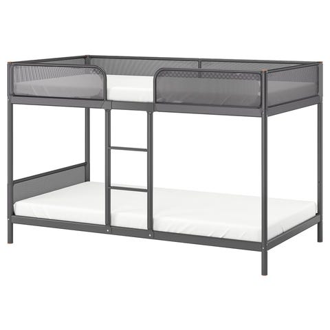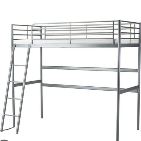 IKEA våningssäng i grå metall med stege. Nedmonterad. Madrasser ingår ej.