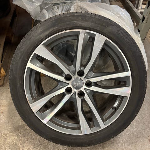 21 tum, MSW by O.Z fälgar med Good Year däck som suttit på en Audi A6 Allroad 2020, men passar flera andra Audi, VW och VAG modeller. ca 4mm kvar, finns lite kantskrap som är ifyllt med svart lack. Pris satt med detta i hänseende.