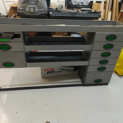 Förvaringsinredning för skåpbil med 3 lådor monterade under ett heltäckande golv