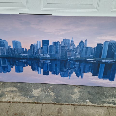 Fint inramade tavlor med landskaps- och marint motiv.