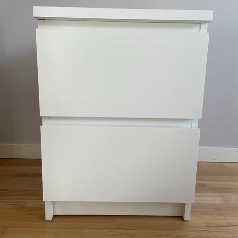 Vitt sängbord.