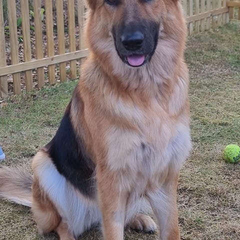 Jätte snäll bland ras hane. Saknar stamtavla, Pappan är en sankt bernhard och mamman är också en sankt bernhard. Eftersom den ena föräldern saknar stamtavla. Skrivs den som blandras, Han fyller 1 år den 14 mars. Trivs ute i skog och mark och älskar promenader, Han är lugn.