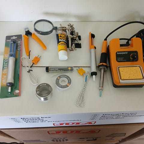Nätansluten lödstation + spetssats + tenn och tennsug. Skickas ej