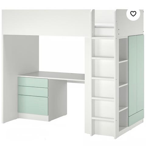 IKEA stuva loftsäng med skrivbord och förvaring vit