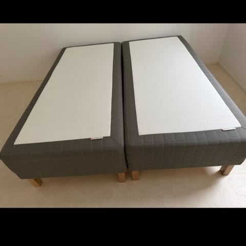 Två stycken precis likadana malmsängar 90x200. Ribbotten Luröy och skummadrass Åfjäll. Ett madrasskydd och ett lakan medföljer till varje säng.