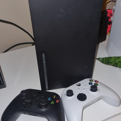 Microsoft Xbox Series X spelkonsol i svart färg med 1 TB SSD-lagring. Kommer komplett i kartong med en handkontroll och strömkabel och hdmi kabel. Enheten är nollställd och uppdaterad.