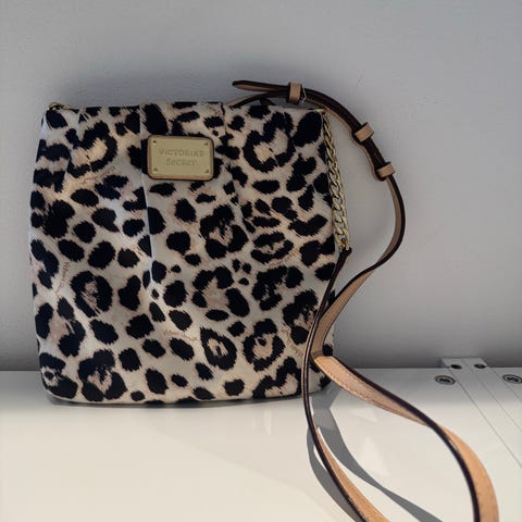 Zara axelremsväska fuskläder leopardmönstrad kvinna