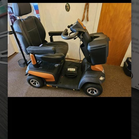 Fyrhjulig rollator i röd färg med svart ramdetaljer. Utrustad med höj- och sänkbara handtag med bromsar, vadderat ryggstöd samt sits för vila. Under sitsen finns en korg/väska för förvaring av mindre saker. Stora hjul som underlättar körning både inomhus och utomhus. Passar vuxen användare som gånghjälpmedel vid förflyttning och promenader.