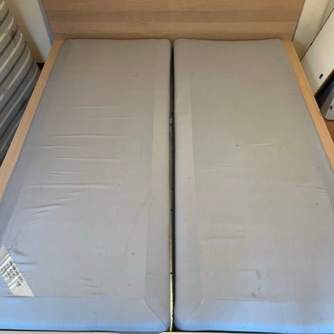 Stavanger resårbotten med Tustna bäddmadrass, 105 x 200cm bortskänkes utan sängben. Lite nersjunken i mitten.