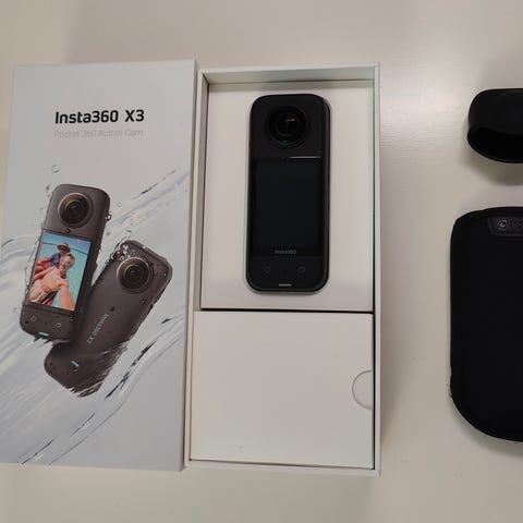 Insta360 One R Twin Edition, actionkamera med flera tillbehör.
