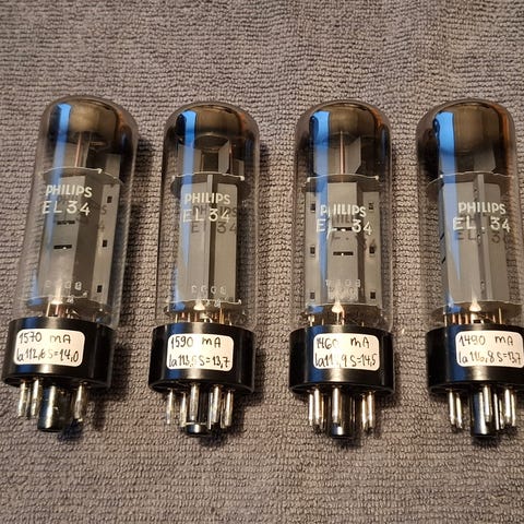 RFT EL34 6CA7 Thin Base O getter NOS Matchad kvartett