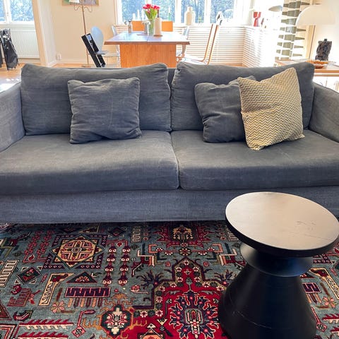 Bra att veta: Tyget Tristan är ett stentvättat tyg som ger ett unikt utseende på varje soffa. Olikheter i tyget och märken är alltså en del av tygets charm.