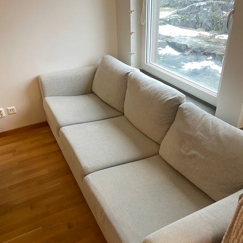 Säljer min 1,5 år gamla VIMLE bäddsoffa i färgen Gunnared beige. En stilren och mycket bekväm soffa som enkelt förvandlas till en rymlig säng – perfekt för både vardag och gäster.