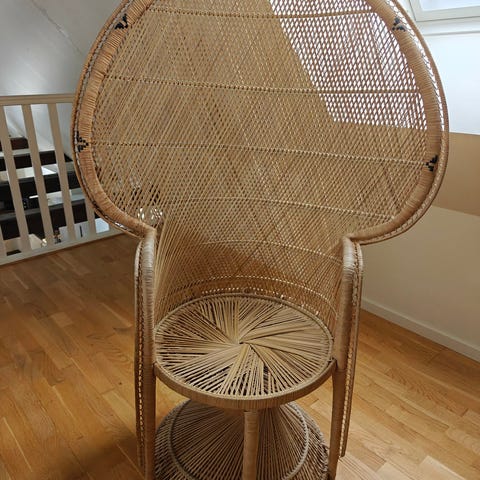 Sika design Monet Gungstol i naturfärg. Stolen har rundad rygg och sits med tätt placerade rottingpinnar samt armstöd som följer stolens form. Passar för inomhusbruk, exempelvis i vardagsrum, uterum eller läshörna.