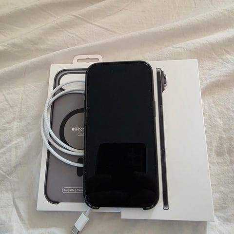 Apple iPhone 15 Pro smartphone med 256 GB intern lagring. Modellen på bilderna är i blå färg och har tre bakre kameror samt skärm med Dynamic Island. Levereras med originalkartong och USB‑C‑kabel enligt bilden. Lämplig för användning med appar, surf, foto och vardaglig kommunikation.Repfri, inga skadade kanter, batterihälsa 86%.