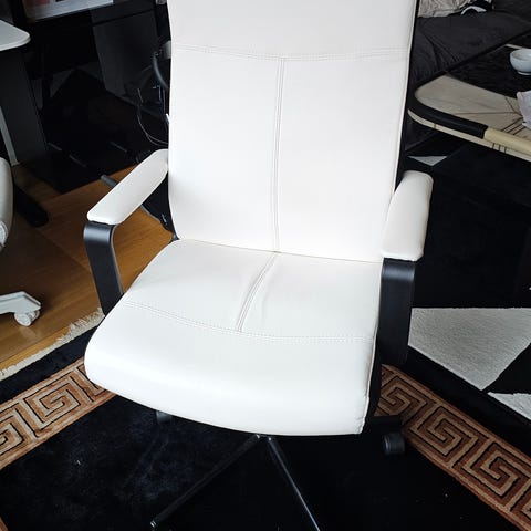 4 st vita matstolar / kontorsstolar i skinn med träben. Priset är för alal 4 stolar, säljes tillsammans.