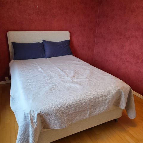 Dunvik med fast madrass. Ingen bäddmadrass följer med. Bra skön säng och man kan byta klädseln som även är tvättbar. Finns centralt i Midsommarkransen.