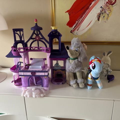Disney dockhus i form av ett slott i lila och blå färger. Huset har flera våningar med öppningsbara dörrar framtill och detaljerade fönster och balkongräcke. Passar för lek med mindre dockor och figurer. Plastkonstruktion anpassad för inomhuslek för barn. Går att fälla ut och in för bra förvaring.
