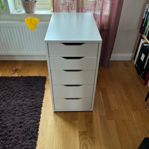 Alex hurts vit 9 lådor 36x116cm. I gott skick inte stora skador. Kan levereras inom Stockholm mot en kostnad.