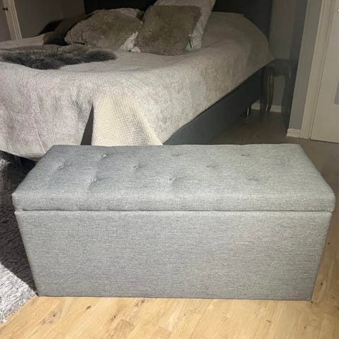 Manchesterklädsel och massivt trä. Med förvaringsutrymme. B95 x H45 x D37 cm. Finns även på andra säljsidor. Först till kvarn som gäller.
