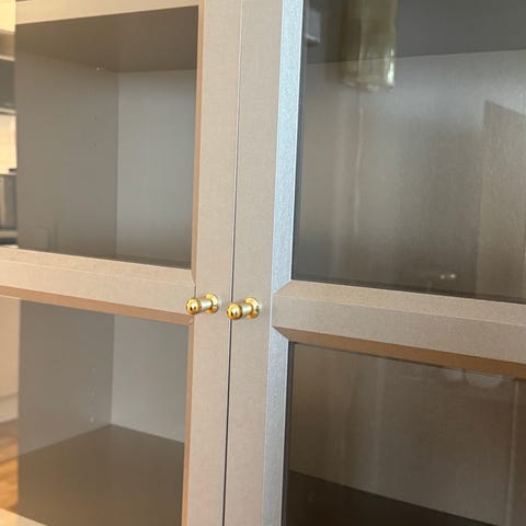 Säljer grått IKEA Billy vitrinskåp + hög hörnhylla. Fint använt skick. Kan köpas separat eller tillsammans.