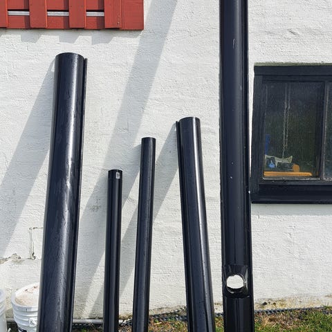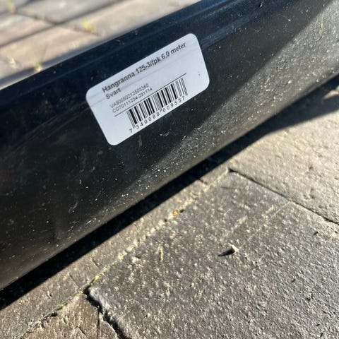 3 meters 125 mm hängränna 120kr per styck.3 meters 90 mm stuprör 120kr per styck. Har stått utomhus och blivit lite smutsiga någon enstaka med lite rost i ändan. Bara att tvätta av därav det låga priset.
