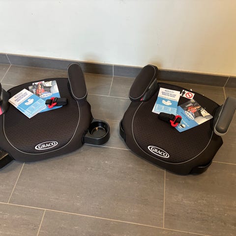 Graco bälteskudde för barn. Bälteskudden är svart med röda detaljer och är avsedd för användning tillsammans med bilens trepunktsbälte. Utformad för att höja barnet så att bilbältet hamnar i korrekt position över höft och axel. Passar barn inom storleksintervall där bälteskudde rekommenderas enligt gällande säkerhetsregler. Sits med vadderade armstöd för ökad komfort under bilresor.