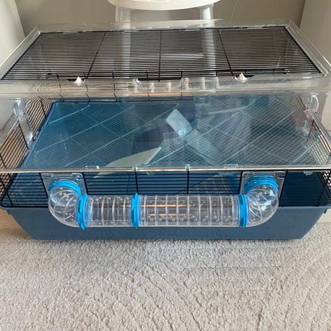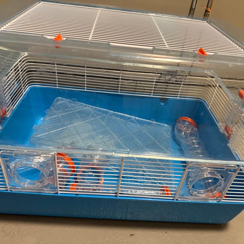 Bottenplan samt två våningsplan, rörsystem utanpå buren som går att ta bort om man vill, delar för att stänga igen hålen medföljer. En massa olika tillbehör medföljer så som småhus, broar, igloo, badkar, vattenflaska osv.